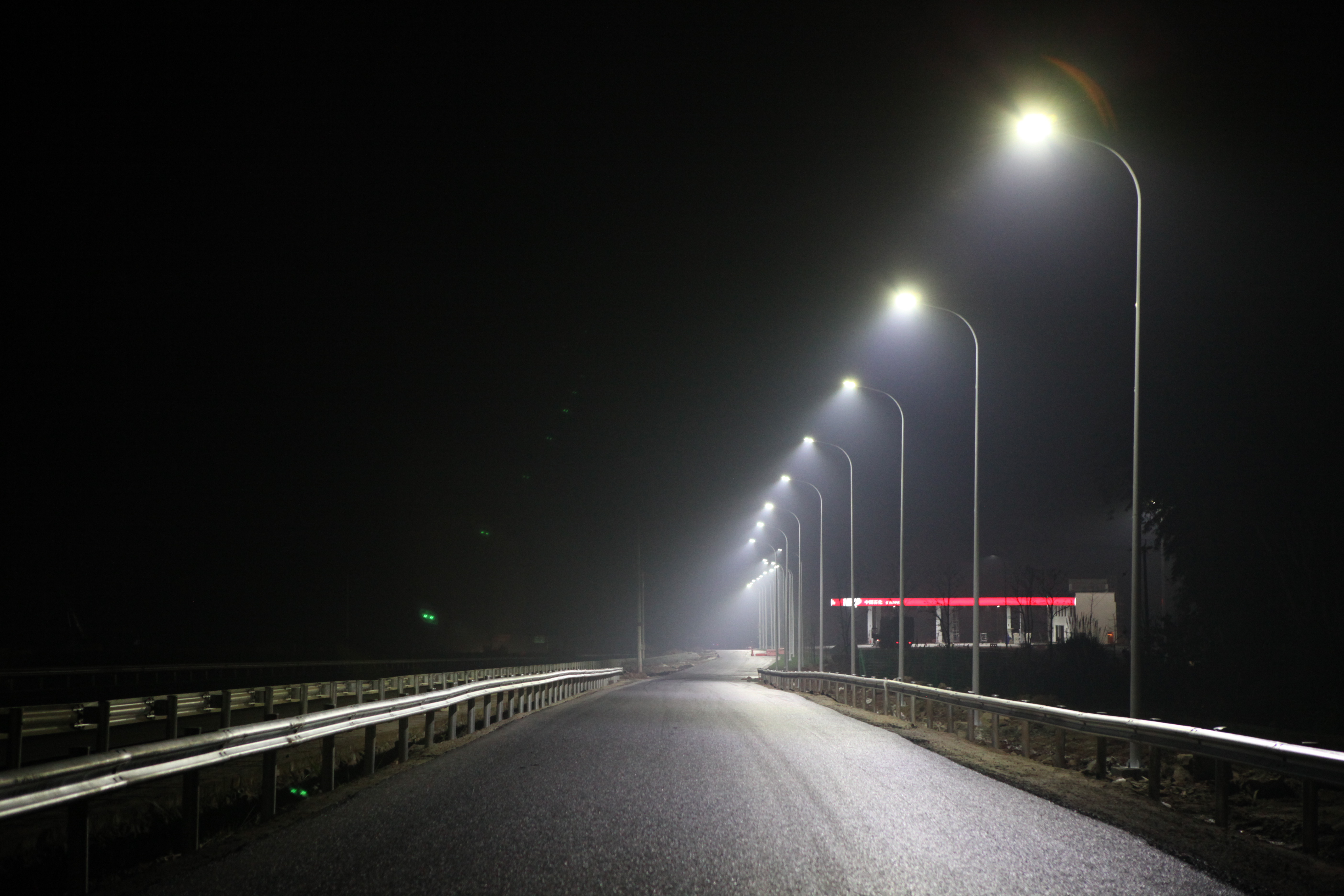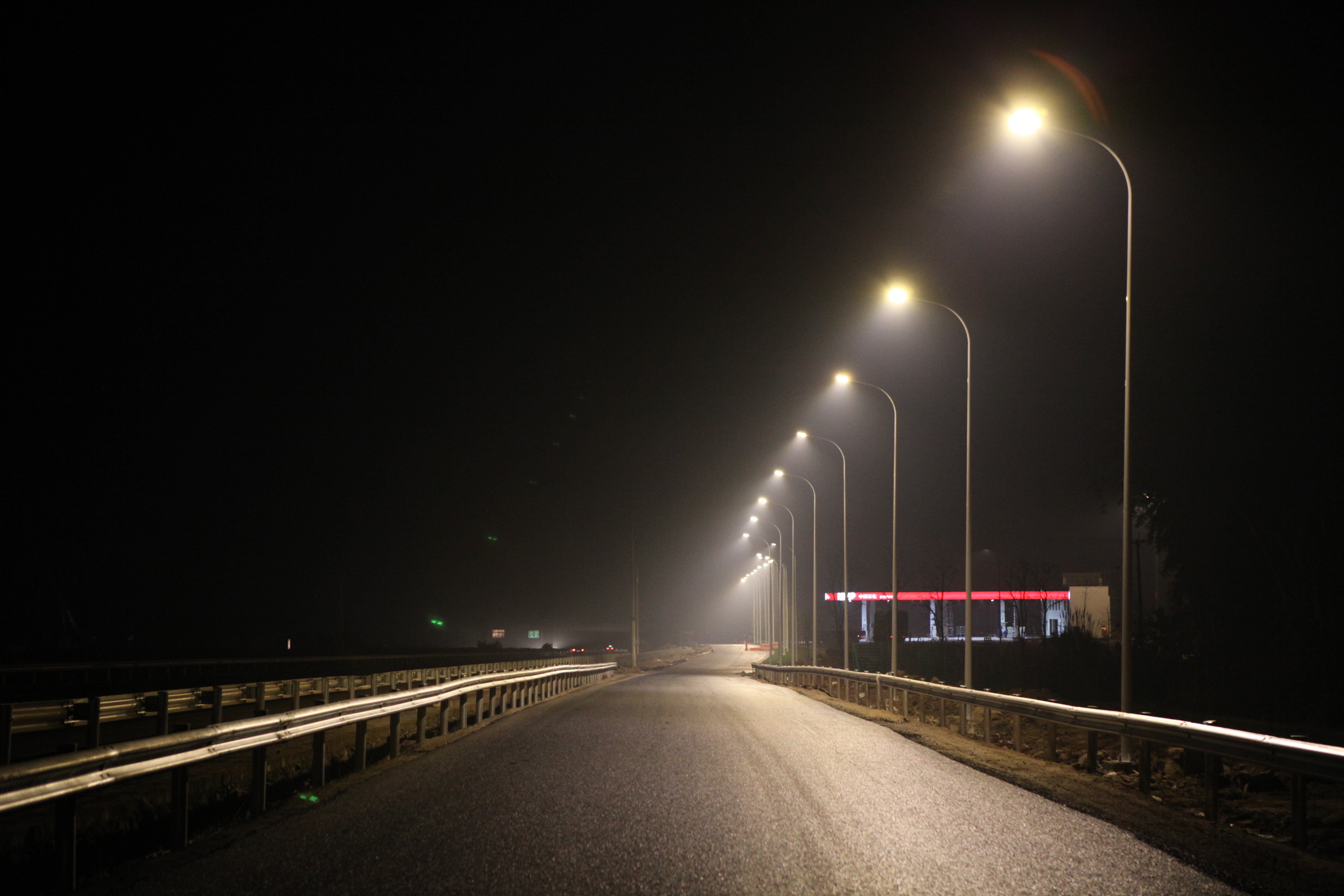 G50重慶渝涪高速公路四川安岳服務區(qū)使用重慶“中國創(chuàng)造”世界領先物聯網多色溫防霧霾LED人工智能路燈