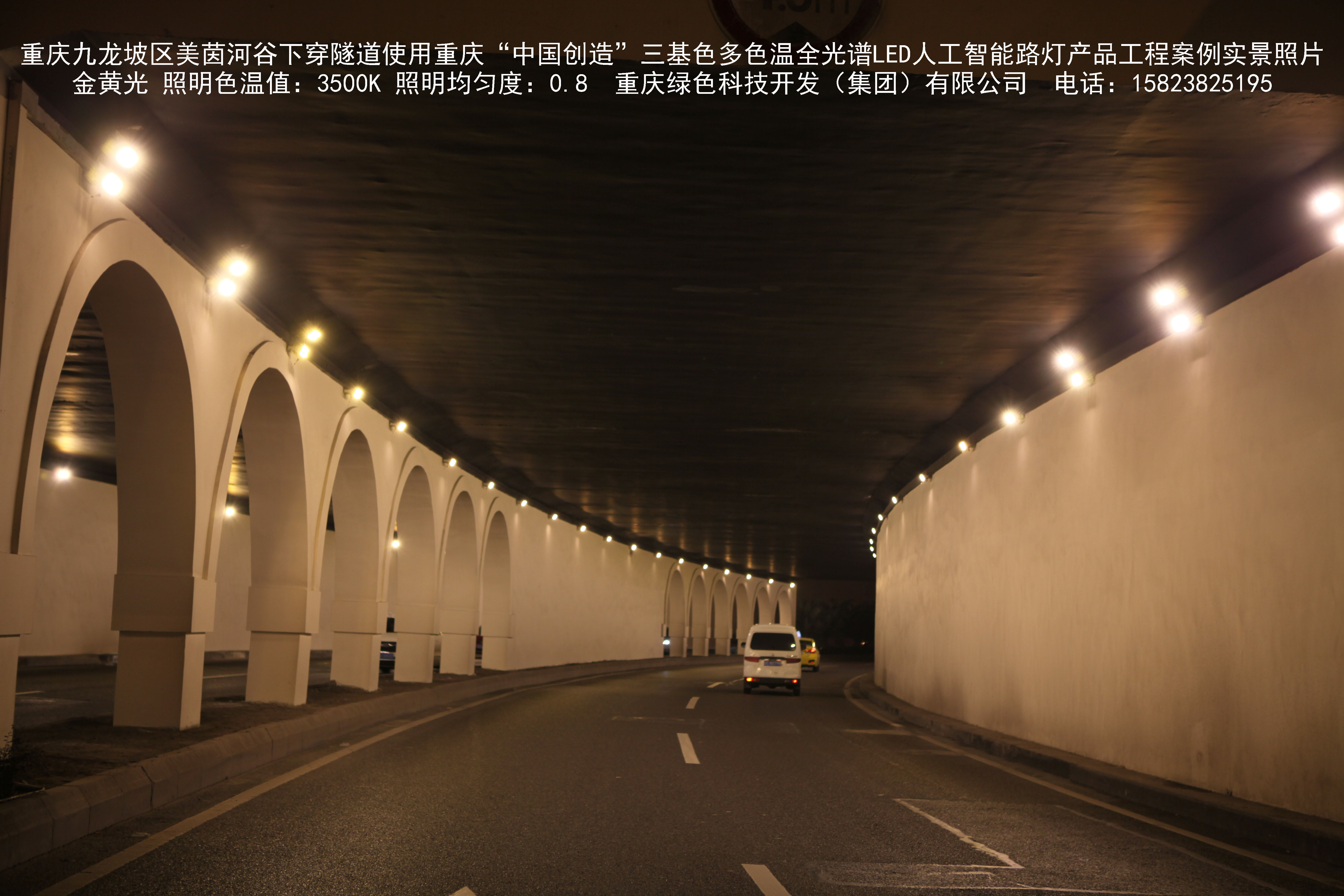 2018年9月,重慶市九龍坡區(qū)城市管理局使用我司自主研發(fā)制造的重慶“中國(guó)創(chuàng)造”三基色多色溫全光譜LED人工智能隧道燈系列產(chǎn)品,實(shí)施了美茵河谷下穿隧道市政設(shè)施品質(zhì)提升工程。該工程已全面竣工。工程實(shí)施后,極大地提高了城市照明清晰度、燈光均勻度、舒適度。通過(guò)智能終端實(shí)現(xiàn)單燈感知、線(xiàn)纜防盜報(bào)警,與原高壓鈉燈相比,節(jié)能率60%以上,有效解決了關(guān)閉控制回路或間隔關(guān)燈方式造成的照明暗區(qū),確保行人和車(chē)輛通行的安全,實(shí)現(xiàn)城市路燈照明系統(tǒng)的智能化管理,推進(jìn)了智慧城市建設(shè)。