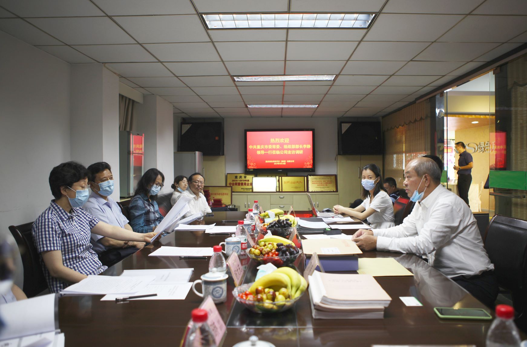 9月10日,中共重慶市委常委、統(tǒng)戰(zhàn)部部長(zhǎng)李靜蒞臨重慶綠色科技開發(fā)(集團(tuán))有限公司走訪調(diào)研,中共重慶市委統(tǒng)戰(zhàn)部副部長(zhǎng)、市僑聯(lián)黨組書記史全波,中共重慶市委統(tǒng)戰(zhàn)部副部長(zhǎng)、市僑辦主任楊大慶,中共重慶市渝中區(qū)委常委、區(qū)統(tǒng)戰(zhàn)部部長(zhǎng)章琳一同隨行。會(huì)上董事長(zhǎng)鄧明鑒分別匯報(bào)了企業(yè)生產(chǎn)經(jīng)營(yíng)、向貧困縣扶貧捐助及個(gè)人參政議政情況,李靜常委在聽取匯報(bào)后對(duì)公司利用自主知識(shí)產(chǎn)權(quán)研造的多色溫全光譜LED智能照明先進(jìn)技術(shù)表示贊賞,對(duì)鄧明鑒董事長(zhǎng)認(rèn)真履行多項(xiàng)職務(wù)所做的工作,堅(jiān)持做好參政議政、捐助貧困縣,助力脫貧攻堅(jiān)、服務(wù)經(jīng)濟(jì)社會(huì)發(fā)展、協(xié)調(diào)各方化解社會(huì)矛盾,予以肯定。